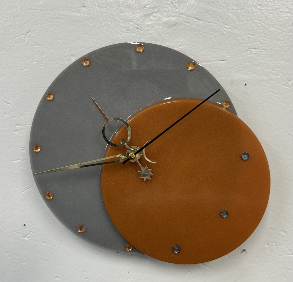 11″ Epoxy Resin Clock with embedded glass